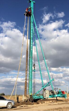 成孔成桩一下性变现,技能自带的吊臂,一下性变现箍筋笼的设备吊装。35米深桩,