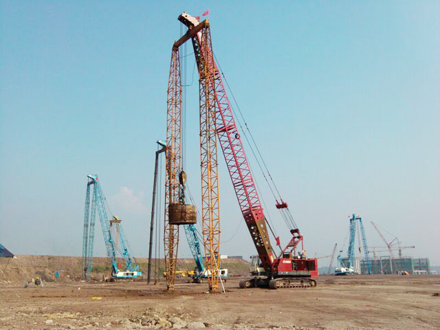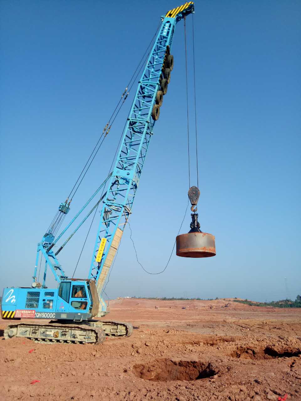 2、 强夯施工宜接纳带主动脱钩装配的或别的公用装备。接纳履带式起重机时,可在臂杆端部设置帮助门架,或接纳别的宁静办法,避免落锤机会架颠覆。